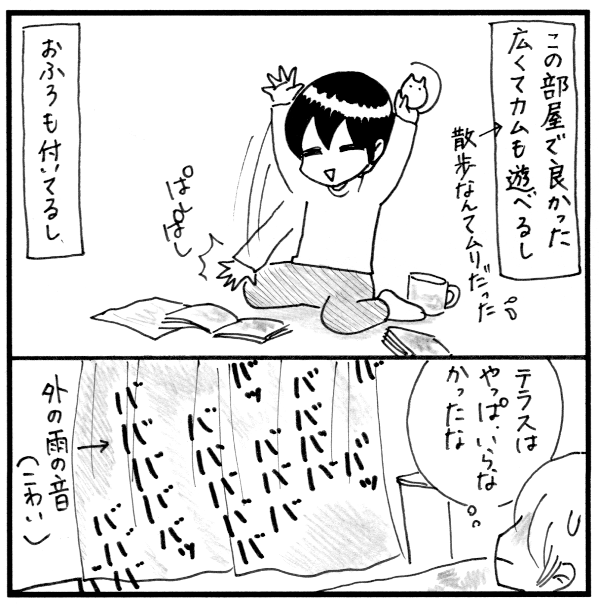 北海道移住物語 10 2022年01月06日 難聴、発達障害(知的障害)、睡眠障害、摂食障害、体幹機能障害のある息子カムを連れて東京から北海道へ移住したお話 元気に動き回れたのはカムのご飯を温めに行った時だけだったよ。。バス付の広い部屋でよかったと心底思った。テラスは結局使わなかったけど。天気よかったらテラスも気持ちよかったんだろうな(遠い目)。 北海道に到着したのは朝。長く苦しい旅が終わった。この時は本当に心底ホッとしました〜 次回に続く▼続きはこちら▼ ▽最初から読む▽ ***** 「思い出漫画」カテゴリの最新記事 タグ :#育児記録#発達障害#聴覚障害#障害児育児#育児漫画#コミックエッセイ#漫画#北海道移住 < 前の記事次の記事 > コメント コメント一覧 (8) 1. Yoko 2022年01月06日 20:43 こういう場合(横揺れ)縦に長い(大人)方がダメージ強いのか?… いや、up downもあるから違うか😅 なんにせよカムちゃんが酔わなくて本当によかったですね😭全滅だと…親もおちおち休めませんもの💦😭😭😭💦 ご無事でなにより〜(´∀`*) …でも大揺れの時の大浴場、ちょっと気になるわ😋💖ちゃっぷん❣️ 0 しおり がしました 5. shiori 2022年01月08日 21:03 >>1 子供の方が揺れに強いとかあるのかもしれないですね。どうなんだろう。とりあえず我が家は乗り物酔いしない夫までダウンしたのに(酔い止めも飲んだのに)、カムだけピンピンしていました😂 0 しおり がしました 2. さくま 2022年01月06日 22:23 揺れるフェリーの大浴場はお湯も一緒に揺れるので、つかれないと思います。 少しの揺れでもじゃぶーんとあふれていたので💦 私は太平洋側を引っ越しで何度か乗りましたが、飛行機が楽だなって思います笑 0 しおり がしました 6. shiori 2022年01月08日 21:04 >>2 大浴場、楽しみにしていたのに歩くことができず。。でもやっぱり揺れが酷くて閉鎖されちゃいました。揺れてたら危なくて入れないですよね💦 0 しおり がしました 3. 櫛田千春 2022年01月06日 23:14 ありゃ😵🌀やっぱり 奇跡的回復とはなりませんでしたか😨ご夫婦とも 大変でしたね😅でも カム君が 元気なほうが ありがたいですよね💦地獄の長い時間 お疲れ様でした😌💓 『じっ!』と見つめる👀〰️💓カム君が 可愛らしい💮 0 しおり がしました 7. shiori 2022年01月08日 21:07 >>3 しんどかったです!でもカムがご機嫌で良かった!そして、カムが揺れに強くて乗り物好きという事も知れてよかったです! 0 しおり がしました 4. 台風前の船 2022年01月07日 20:39 私は小学生の頃、奄美〜鹿児島を家族でよく船を利用していたからまっすぐ歩けないほどの揺れる船はよくわかります☺️私は酔いやすかった方ですが、子供だったので楽しかった思い出です😌台風が近づいてきてる欠航直前の揺れもひどいですがいい思い出です😁 0 しおり がしました 8. shiori 2022年01月08日 21:08 >>4 イメージはタイタニック!沈むんじゃないかと心配でしたが、案外大丈夫なんですね。 船、もっと楽しみたかった〜 0 しおり がしました このブログにコメントするにはログインが必要です。 さんログアウト この記事には許可ユーザしかコメントができません。 コメントフォーム 名前 コメント 記事の評価 リセット リセット 顔 星 情報を記憶 コメントを投稿する