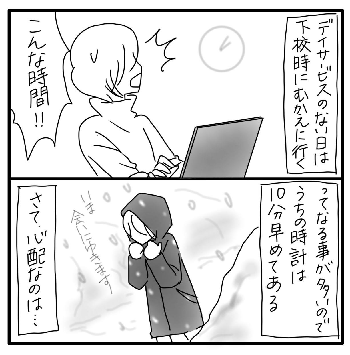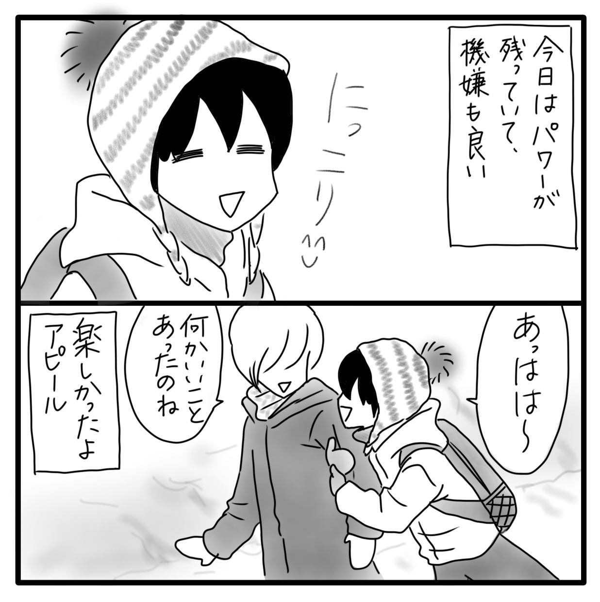私とカムのある日の記録 6 2022年04月11日 お迎えの時にはエネルギー使い果たしていることも多く、帰るまでに時間がかかることも。こんな時、昔はおんぶで帰ったんですが、体重40キロ前後にまで成長したカム。 もう…おんぶ無理。。なので、下校は緊張の瞬間です!嬉しいことにこの日はスムーズに帰れました。さて、カムのお楽しみタイム!大好きなおやつ(おにぎり)の時間です!!次回に続く↓ 下校の時のエピソード↓ ▼続きを読む▼ ***** 「日常」カテゴリの最新記事 タグ :#漫画#育児漫画#育児記録#コミックエッセイ#障害児育児#発達障害#知的障害#日記 < 前の記事次の記事 > コメント コメント一覧 (2) 1. 櫛田千春 2022年04月11日 20:05 ふふふっ☺️この時は 大丈夫だったんですね💮しおりさんは 苦労してますが 見てるほうは なんだか ほのぼのした気分になります😆🍀 学校で楽しいことがあったときは おやつの おにぎりもさぞ おいしいことでしょう🎵 0 しおり がしました 2. Shiori 2022年04月16日 23:20 >>1 学校で楽しく過ごして、美味しいおにぎり食べて。幸せそう🍙✨です。反抗期の子は扱いがなかなか大変ですが、まだまだ可愛い💕 0 しおり がしました このブログにコメントするにはログインが必要です。 さんログアウト この記事には許可ユーザしかコメントができません。 コメントフォーム 名前 コメント 記事の評価 リセット リセット 顔 星 情報を記憶 コメントを投稿する