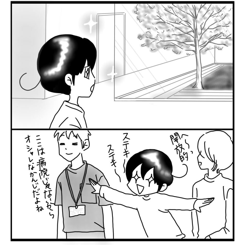 障害児カムとスムーズにコミュニケーション取るコツ 3 2022年05月18日 つづく※カムが小学生の頃のお話ですリハビリを開始してしばらくの間はカムの行きたいところ、やりたいことを優先し、リハビリ室には一歩も入らない日々が続きました。病院内をあちこち探検し、物置や階段、事務室?みたいなところなど入っても大丈夫な所は自由にさせてもらいました。(当時は大丈夫だったけど今なら難しいかも…) 次回に続く ▼続きを読む▼ ▽他のカムのトリセツを読む▽ ***** 「日常」カテゴリの最新記事 タグ :#漫画#育児漫画#育児記録#コミックエッセイ#障害児育児#発達障害#知的障害#リハビリ#コミュニケーション < 前の記事次の記事 > コメント コメント一覧 (7) 1. 櫛田千春 2022年05月18日 20:21 はぁ~😄目からウロコです🤩本人の好きにさせる⤴️私なら 『リハビリに来たんだからリハビリ室直行が当たり前』と思ってしまいます💦でも リハビリなんだから 心が気持ちいいほうへ導いてあげるべきですよね😉カム君のキラキラお目々は こちらまで 嬉しくなります💮 0 しおり がしました 3. Shiori 2022年05月18日 23:48 >>1 これから定期的に通うことを考えると、この場所、この先生を好きになってもらうって大事だと思うんです。しかも限られた短い時間でのアプローチを有効にするために、これは大事なことだったんですね! 0 しおり がしました 4. Shiori 2022年05月18日 23:48 >>1 これから定期的に通うことを考えると、この場所、この先生を好きになってもらうって大事だと思うんです。しかも限られた短い時間でのアプローチを有効にするために、これは大事なことだったんですね! 0 しおり がしました 2. Yoko 2022年05月18日 22:00 なるほどね🙄 私も目から鱗がボロボロと〜😆💦 これから長くお付き合いするのにこの時間を惜しんでいてはだめですね… 急がば回れ。いや違うな…🤔 身体だけでなくこころのリハビリでもあるわけですね💜😍💜(👍) 0 しおり がしました 5. Shiori 2022年05月18日 23:49 >>2 そうそう!心のリハビリ。気持ちから変えていかないと成長に繋がらないということなんですよね! 0 しおり がしました 6. ともすけ 2022年05月19日 07:44 わかります! うちもPTは一年くらい先生に抱っこしてもらってお昼寝って言う時間を過ごしました。 でもそこで得られた先生に対する信頼感と安心感ってものすごく大切で、その後の様々な場面で「この先生がやれというのならちょっと頑張ってみようかな」っていう気にさせるんですよね。 0 しおり がしました 7. Shiori 2022年05月20日 21:35 >>6 わかります!!一見、何もしていないかのような時間が、安定した土台作りの時間なんですよね。出来上がった信頼関係はリハビリの時間をかなり有意義な時間にしてくれました。 0 しおり がしました このブログにコメントするにはログインが必要です。 さんログアウト この記事には許可ユーザしかコメントができません。 コメントフォーム 名前 コメント 記事の評価 リセット リセット 顔 星 情報を記憶 コメントを投稿する