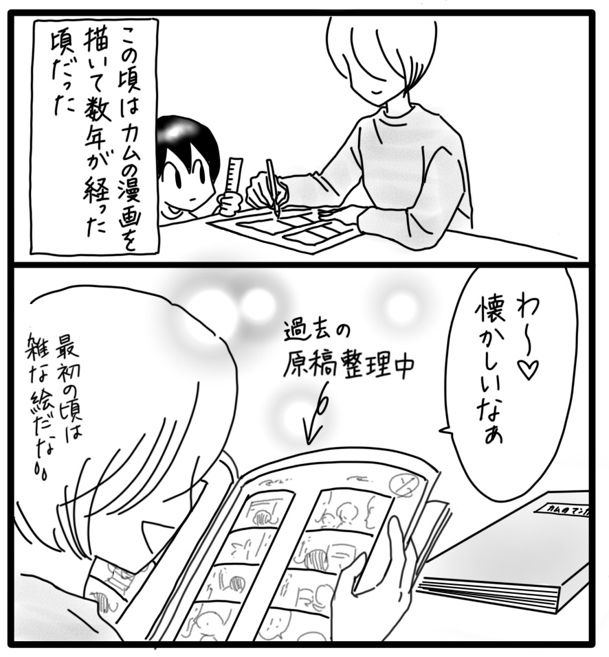 障害児カムのことばの話 21 2022年07月10日 ※このお話はカムが小学生の頃のお話です漫画を描き始めたのはカムが小学生になる少し前。この頃は漫画歴数年経っており、インスタにも投稿し始めた頃だったと思います。その時は何気なく記録したのですが後から見返すといろんな答えが見つかる。記録って大事だなと実感します。さて私が見つけたものとは!?次回に続く ▼続きを読む▼ ▽最初から読む▽ ***** 「日常」カテゴリの最新記事 タグ :#漫画#育児漫画#育児記録#コミックエッセイ#障害児育児#発達障害#知的障害#子育て#難聴#手話 < 前の記事次の記事 > コメント コメント一覧 (4) 1. 櫛田千春 2022年07月10日 20:53 少しの手話でも カム君的にオッケーなんですね。 痛い‼️は知らせて欲しいですけど・・・さて?衝撃の発見とは? 体調戻りましたか?無理されませんように‼️ 0 しおり がしました 3. Shiori 2022年07月14日 19:11 >>1 体調不良を知らせる事はなんとか習得してもらいたい! なかなか難しいんですけどね😅 0 しおり がしました 2. ともすけ 2022年07月12日 16:20 最後のコマのしおりさんの目がカムちゃんの目になってる! 何を見つけたのか気になるっ 0 しおり がしました 4. Shiori 2022年07月14日 19:13 >>2 過去の記録って大事ですね! 色々と発見があります😁 さて、何を見つけたのか… 0 しおり がしました このブログにコメントするにはログインが必要です。 さんログアウト この記事には許可ユーザしかコメントができません。 コメントフォーム 名前 コメント 記事の評価 リセット リセット 顔 星 情報を記憶 コメントを投稿する