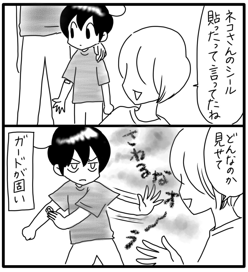 猫シール(絆創膏)を貼ってもらったカム。