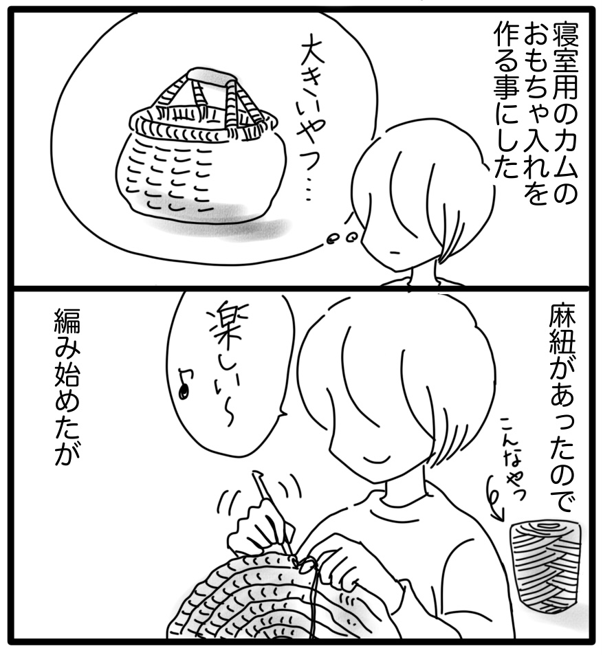 このおもちゃ入れを編むのが