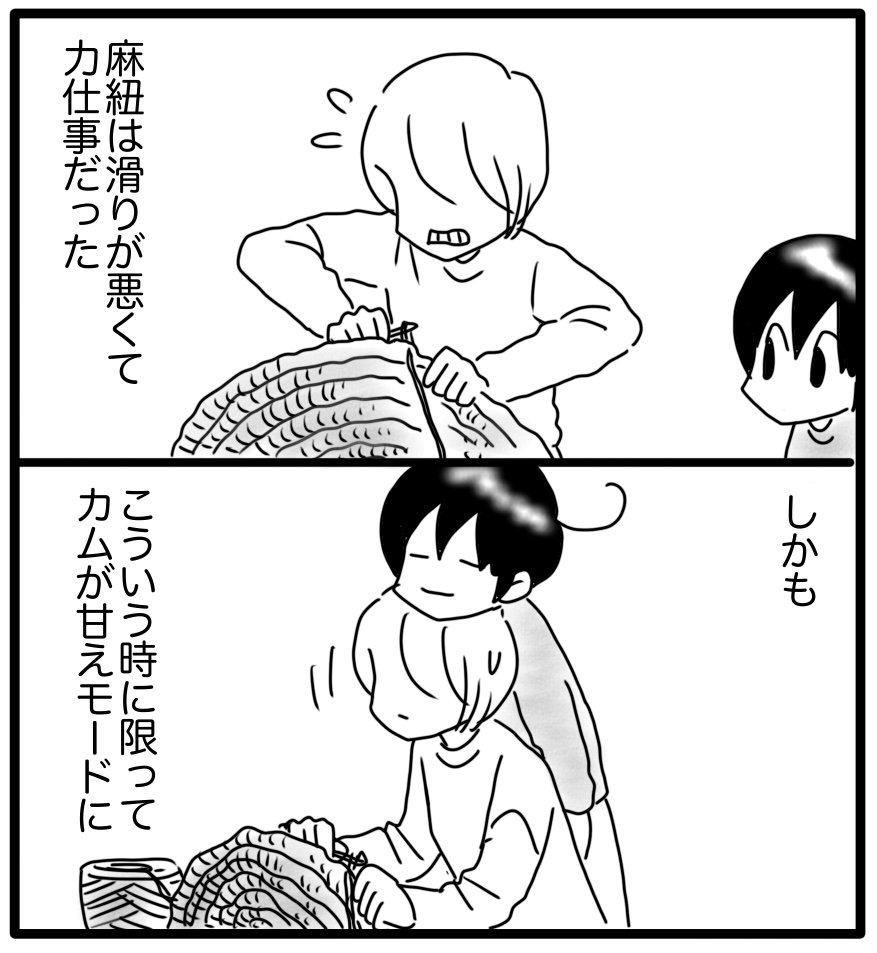 麻紐の滑りが悪くて