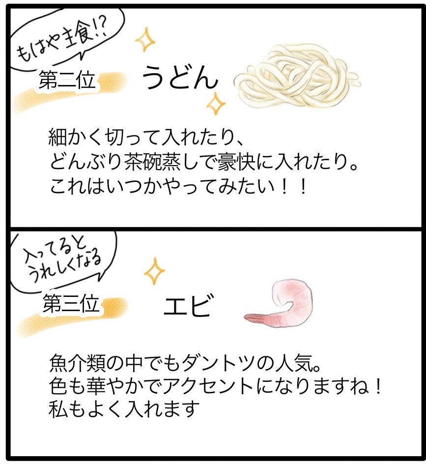 『おすすめの茶碗蒸しの具は?』とアンケートをとりました。