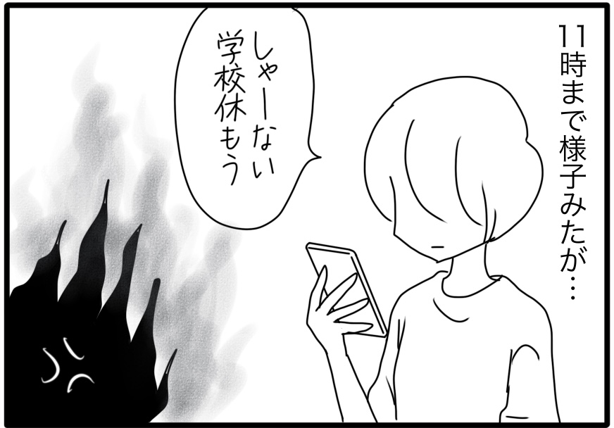 学校行きたい! 2023年09月11日 台風が接近中でカムが不安定に。先生が、カムちゃんのペースでゆっくり来てくださいと言ってくれていて、様子みたけど…昼前に断念。カムは比較的午後や夜が元気なので、学校に行きたい!とエンジンかかる時には下校の時間なんてことも。夜間学校とかあると良いんだけどな~***** 「日常」カテゴリの最新記事 タグ :#漫画#育児漫画#育児記録#コミックエッセイ#障害児育児#発達障害#知的障害#子育て < 前の記事次の記事 > コメント コメント一覧 (2) 1. ともすけ 2023年09月11日 19:53 わかる! 特別支援学校なのだからそこに通う子の特性に合わせて登校時間や登校時期を自由に選択させて欲しいよね。 うちは夏生まれだからか7月後半から8月が元気で、入院知らずなのがその時期なのに、せっかく元気いっぱいな月は夏休み期間で登校できないという…。 夏休みよりも初夏休み(5〜6月頃の季節の変わり目)や晩秋休み(こちらも季節の変わり目)にして欲しいって言ってました。 0 しおり がしました 2. saruzou 2023年09月12日 13:23 わかりますぅ〜! 体調的、感覚的、色々ありますよね〜。 慣れた頃に次……とか。 これはもうその時の運として割り切るしかない〜と、思うようにしています。 0 しおり がしました このブログにコメントするにはログインが必要です。 さんログアウト この記事には許可ユーザしかコメントができません。 コメントフォーム 名前 コメント 記事の評価 リセット リセット 顔 星 情報を記憶 コメントを投稿する