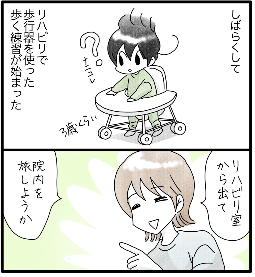 初めての歩行器での練習。