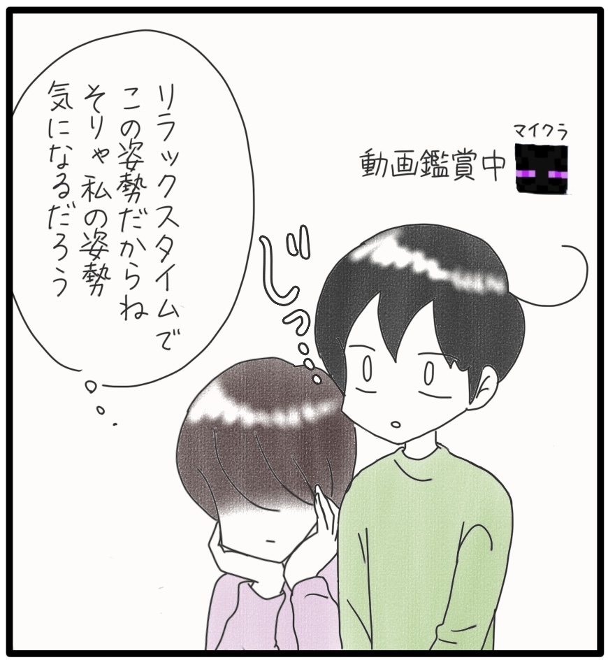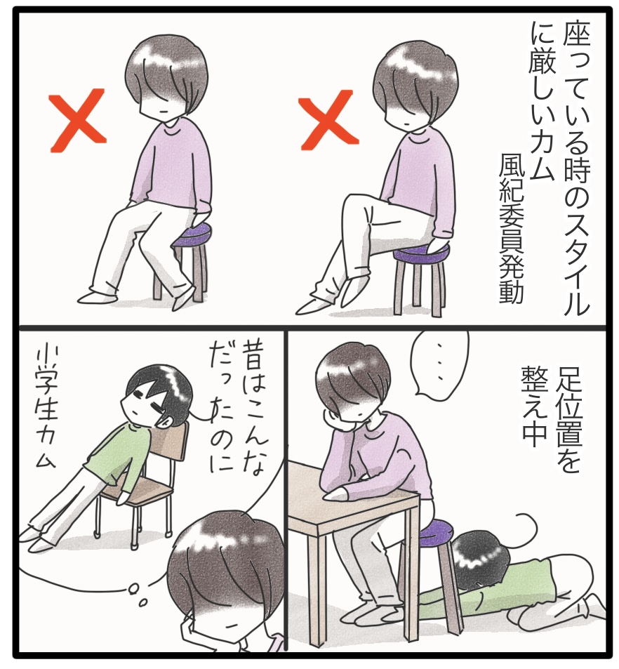 リラックスタイムの風紀委員 2024年05月20日 座っている時の姿勢(特に足の位置)に厳しいカム。私はよく注意される。カムはというと、本当に姿勢良く座ります。背筋をピンと伸ばし、足はきちんと揃えて両手は膝の上。このスタイルで大好きなゲーム動画を見ているんです。こんな指導した覚えないけどな…これがカムの自然な姿のようです。***** 「日常」カテゴリの最新記事 タグ :#漫画#育児漫画#育児記録#コミックエッセイ#障害児育児#発達障害#知的障害#子育て#聴覚障害 < 前の記事次の記事 > コメント コメント一覧 (1) 1. しのぶ 2024年05月22日 17:53 姿勢がいいとそれだけで腹筋と背筋が鍛えられるので、とても良い事だと思います^^ そういう私の背中は丸まっていますが... 0 しおり がしました このブログにコメントするにはログインが必要です。 さんログアウト この記事には許可ユーザしかコメントができません。 コメントフォーム 名前 コメント 記事の評価 リセット リセット 顔 星 情報を記憶 コメントを投稿する