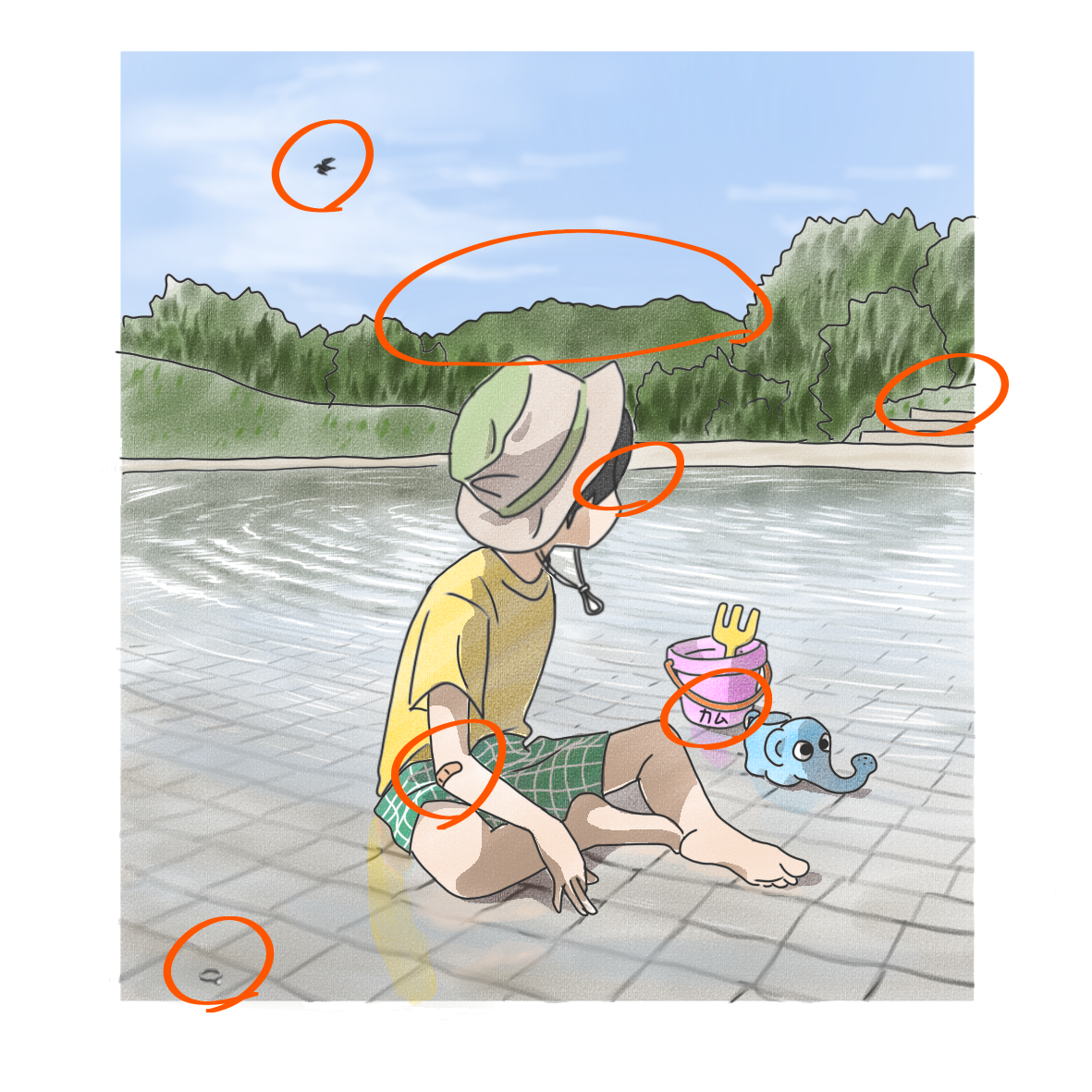 【間違い探し】水遊び 2025年07月05日 暑くなってきましたね。こちら北海道も30度をこえる日もありあちー!あちー!と言いながら過ごしています。ですので、涼しげ間違い探し👏2枚のイラストで7ヶ所の間違いを探してね。見つかりましたか?ヒント①画面右半分に3ヶ所画面左半分に3ヶ所中央に1ヶ所です。ヒント②飛んでたり…落ちてたり…下がってたり…消えてたり…一段なくなってたり…書いてあったり…貼ってたり…答えはこちら↓↓↓↓↓↓7つの間違いを見つけた方の中には、「左下にある丸いのは何?」と思った方がいるかもしれません。これはじゃん!指輪です💍プールや海などに行く時はアクセサリーやメガネなどなくさないように気をつけてくださいね。▼Instagramもよろしくね▼*フォローよろしくお願いします***** 「漫画」カテゴリの最新記事 タグ :#漫画#育児漫画#コミックエッセイ#障害児育児#発達障害#知的障害#聴覚障害#間違い探し < 前の記事次の記事 >