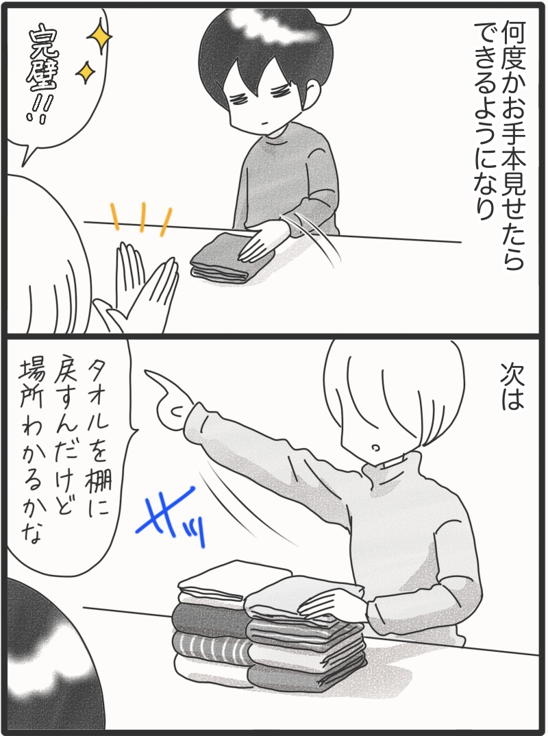 新しいお仕事はじめました*後編 2026年01月12日 いきなり猫の手がポンと出てきて大笑いしました。可愛いのなんのって。さて、新しいお仕事は最後の一手と棚に収納するのは完璧でした。じわじわできるようになっていこう。▼Instagramもよろしくね▼*フォローよろしくお願いします***** 「漫画」カテゴリの最新記事 タグ :#漫画#育児漫画#コミックエッセイ#障害児育児#発達障害#知的障害#聴覚障害 < 前の記事次の記事 >