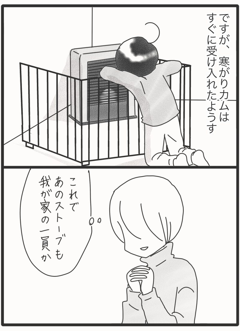 カム先輩は見ている 2026年02月09日 北海道といったら、雪雪といったら、溶ける溶けるといったら、バターバターといったら、ケーキケーキといったら、甘い甘いといったら、砂糖砂糖といったら、白い白いといったら、雪だるま雪だるまといったら、氷点下氷点下といったら、寒い寒いといったら、ストーブ。はい、ストーブのお話です。ストーブが止まるとすぐに気がつき鋭い眼差しを送るカムです。寒がりなんですよ~▼Instagramもよろしくね! *フォローよろしくお願いします***** 「漫画」カテゴリの最新記事 タグ :#漫画#育児漫画#コミックエッセイ#障害児育児#発達障害#知的障害#聴覚障害 < 前の記事次の記事 >