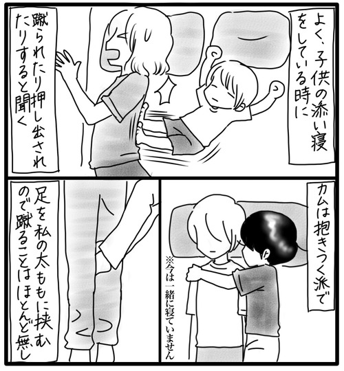 カムは『抱きつく派』 カムと別々で寝るようになって11ヶ月。一緒に寝ていた時はカムがくっついてくるのでカムが寝てから布団を抜け出すというのが本当に難しかったです。まあ、無理でした。カムは、起きている時でも抱きついてくる事が多い。本来なら、やめてよ~!って離れていくような場面でも、 ... 続きを読む 2022年08月03日