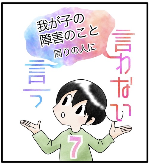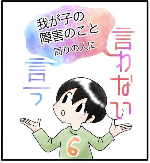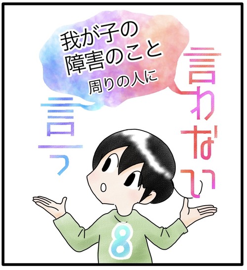 障害のこと、言う?言わない? 8 障害というものが身近になるまでこんなにも差別や嫌がらせがあるなんて思いませんでした。特にカムが幼い頃は午前中は通院、リハビリ、療育に通い、午後はカムと一緒に職場に向かうという毎日だったので外でいろんな方と出会う機会が多かったという事もあるかもしれません。 ... 続きを読む 2023年07月01日