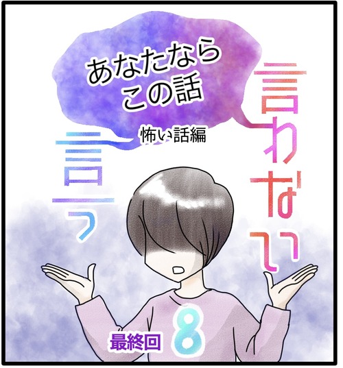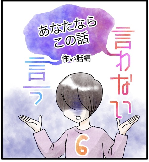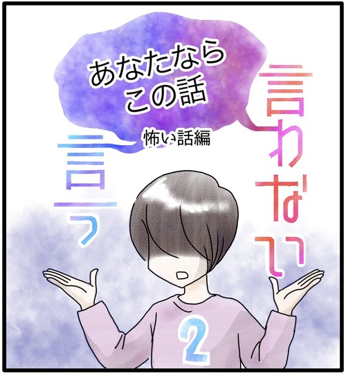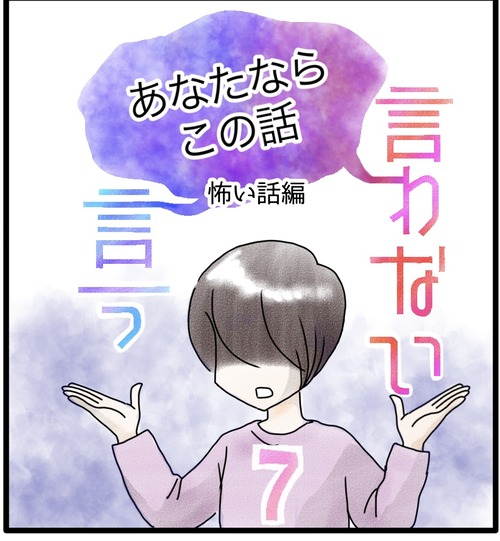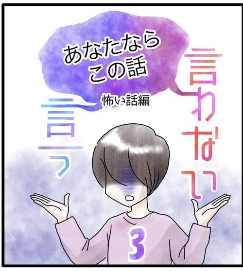 この話、言う?言わない? 1 『言う言わない』のお話は終わったのですが、おまけと言いますか…夏だからと言いますか…短いお話を描きました。タイトルにもある通り、ちょっと怖い話です。怖い話で、涼しくなろう~そんなに恐怖タッチではない、ソフトな仕上がりにしたつもりですが、怖いお話は見たくない ... 続きを読む 2023年07月05日