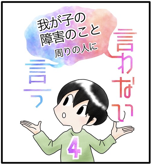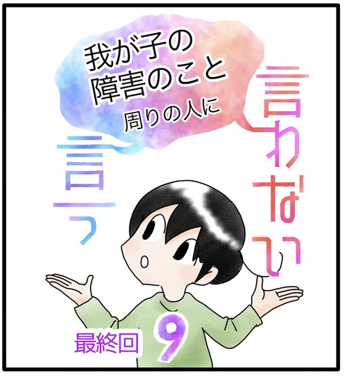 障害のこと、言う?言わない? 最終話 外で嫌な思いをするたびに、『カムにはあんな言葉が耳に入らなくて良かった』と思ったものです。カムは一人っ子ですが兄弟がいたりすると、こういった問題も複雑になってくるのかもしれません。実際、障害のことを話し、すべての方が受け入れてくれるというわけではないです ... 続きを読む 2023年07月02日