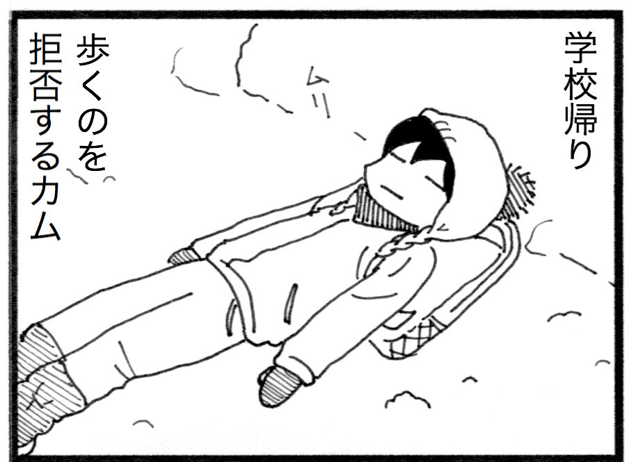 幸せなひととき 学校からの帰り道は、 疲れからか歩くのを拒否して 脱力することがしょっ中です。 でも、たまに、たまーーーーに、 ご機嫌なカムと肩を組んで、 笑い合いながら帰宅することもあります。 本当に楽しく 幸せなひととき。 ご褒美みたいな時間です。 * この漫画を ... 続きを読む 2019年02月28日